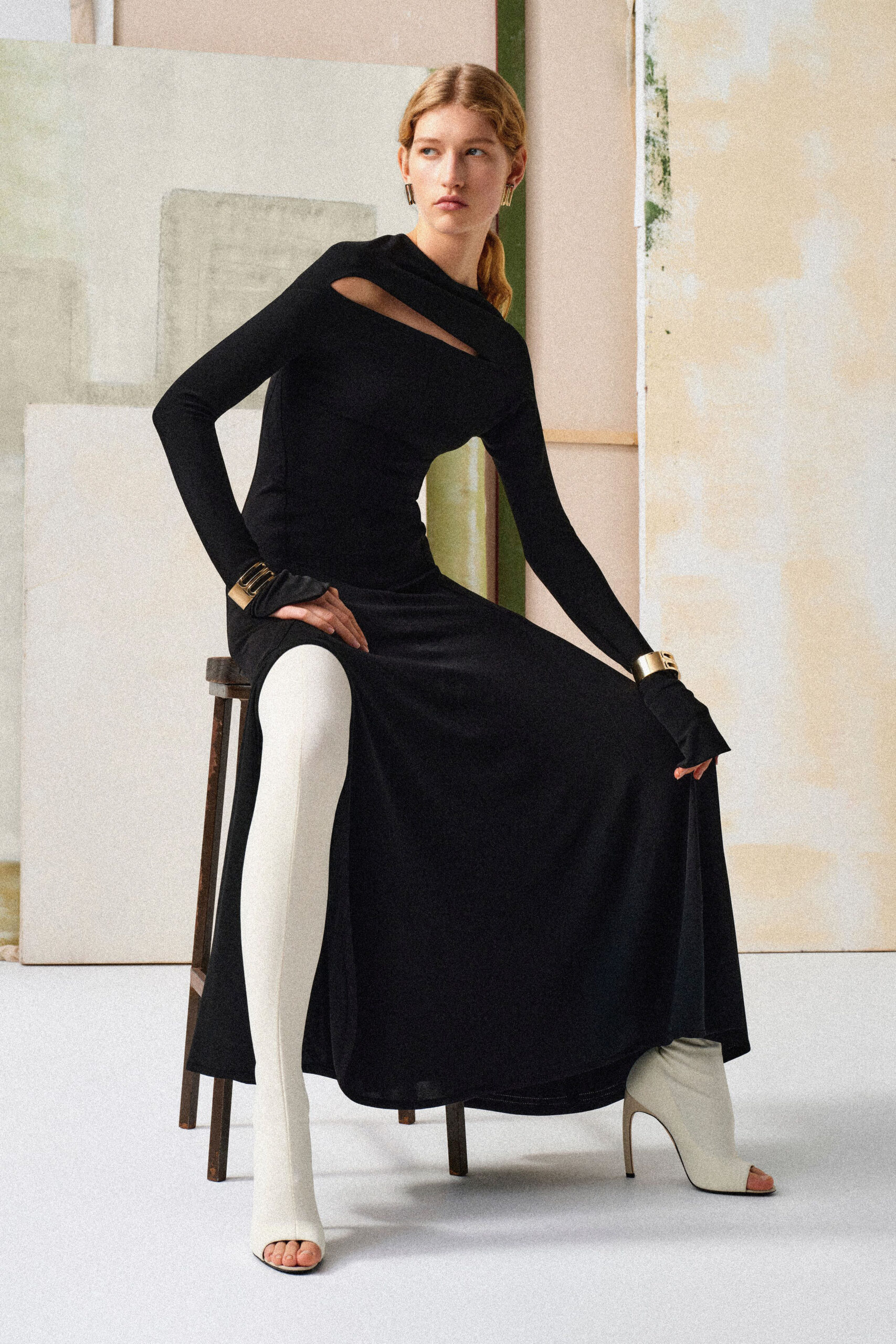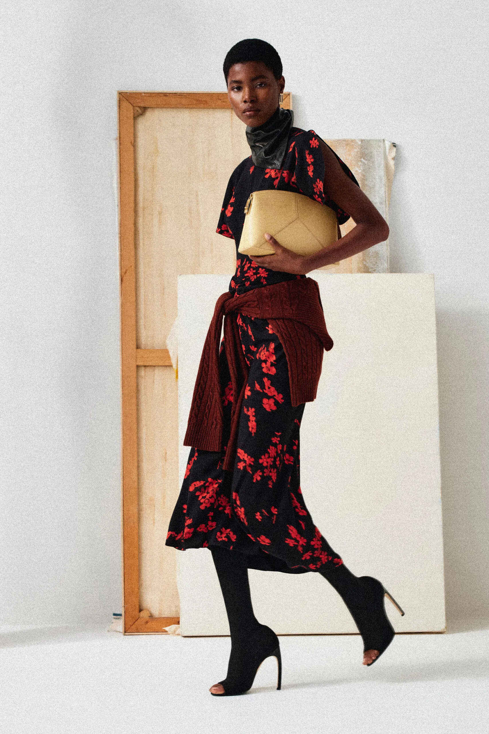 Nem Privé climbed the formidable steps of her first Parisian runway this September, a certain air of mystery has filled her London ateliers. “It’s a powerful femininity that’s quite seductive and alluring,” she said during a preview for her follow-up collection for pre-fall. Her words couldn’t have painted a greater contrast to the pragmatic glamour that defined the first 10 years of her brand. Now, she is changing the conversation. Her spiritual move to Paris—with its haute couture appointments and avant-garde esotericism—is ushering in a courageous but confident paradigm shift for Beckham that was evident even in a commercial proposal like her pre-collection. It’s all in the mystique: sculpturally, dangerously, strangely cut dresses and tops in abstract floral prints and dramatic cinematic colors, crafted in oscillating fluid wools or silks. Some were tensely ruched—part sensual, part aggressive—and others constructed entirely from circular-cut fabric discs that rotated erratically when the model walked down Beckham’s in-house podium. Little knitted tops were subverted in tinselling, so wrong they were right, and deviant mutations like a shiny trouser boot (“I ordered them in every color”) or a big bag adorned with the magnified chain of a men’s wrist watch (a VB signature) were nothing less than intriguing. Appropriately, she cited The Eyes of Laura Mars and Paris, Texas as influences.